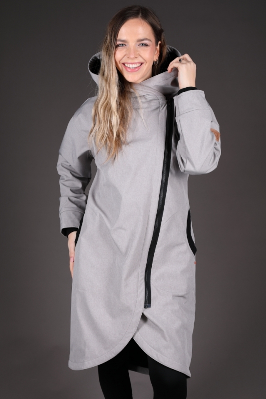 Volnější střih s šikmým zapínáním.