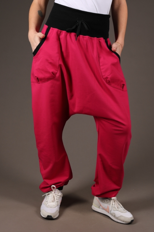 Spodní délka nohavic je stažená do černého nápletu.