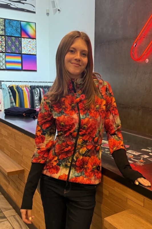 Modelka měří 177 cm. Na fotce má mikinu vel.S a běžně nosí vel.38.