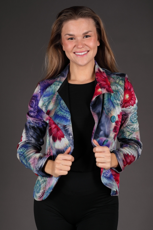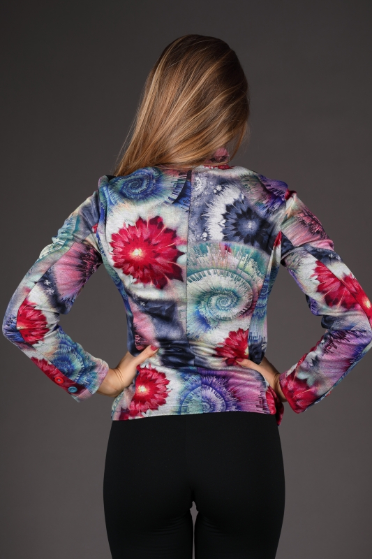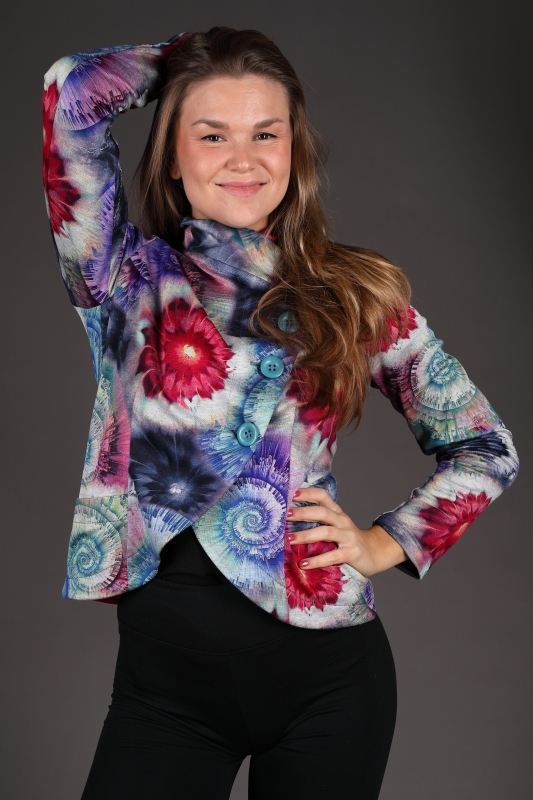 Zapínání barevnými knoflíky - černá, okrová, šedá, růžová.