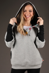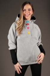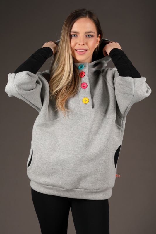 Šedivá mikina s knoflíky.