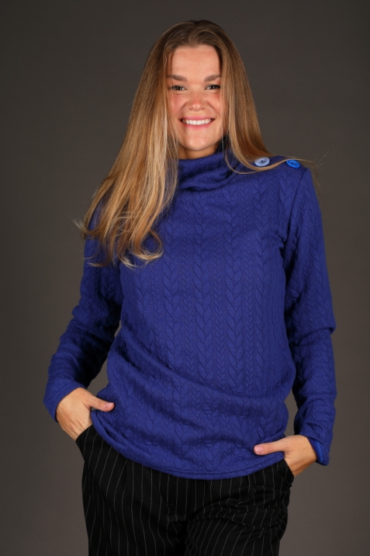 Hřejivý rolák v modré barvě.