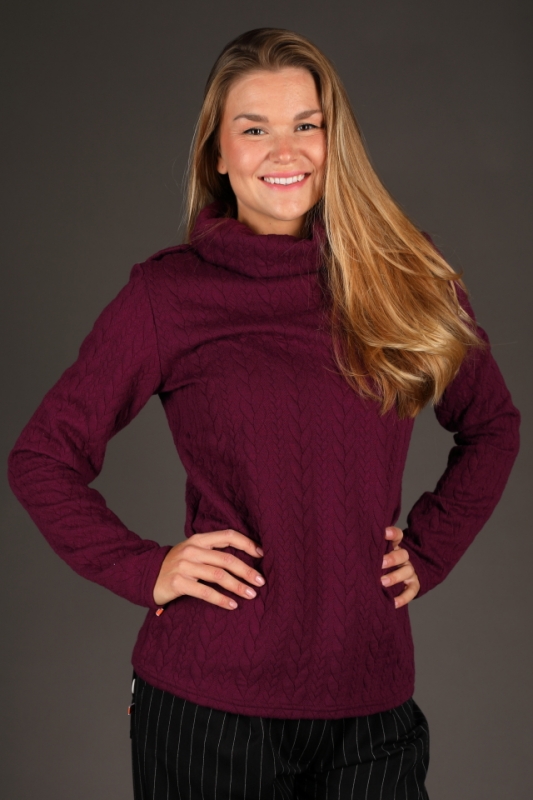 Modelka měří 166 cm. Na fotce má mikinu vel.S a běžně nosí vel.38.