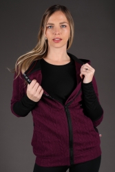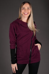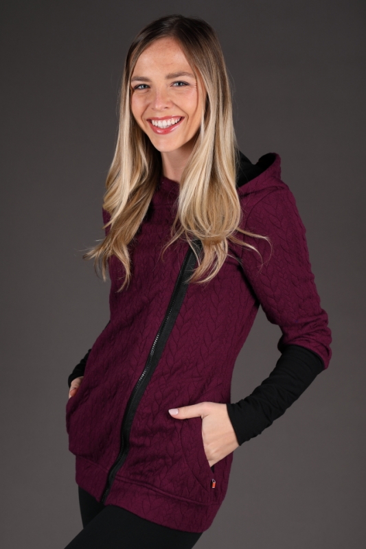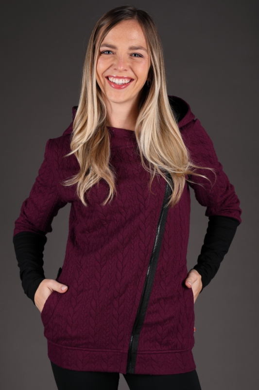 Fialová mikina s černými detaily.