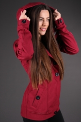 Funkční, softshellová bunda s kapucí a barevnými knoflíky.