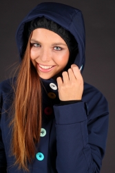 Vrchní materiál: modrý softshell - 94%polyester,6%spandex.