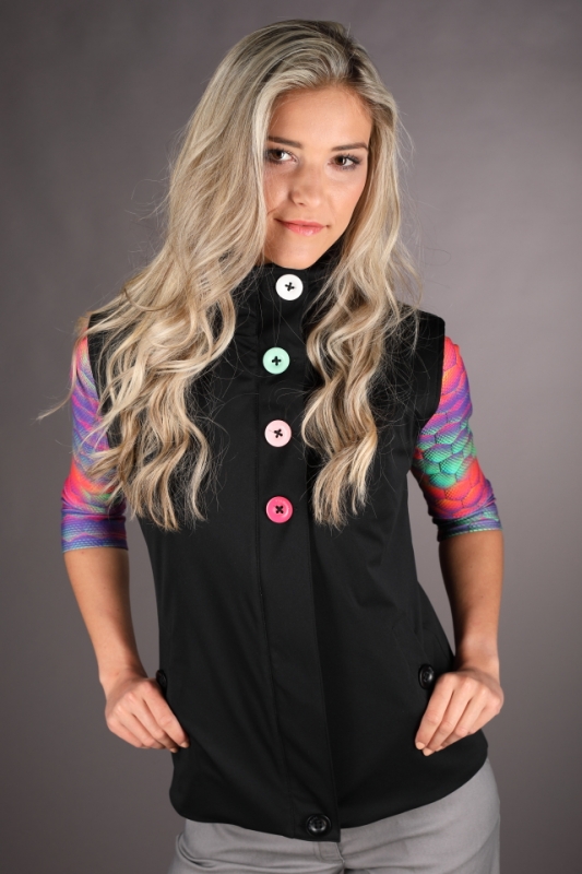 Slečna modelka měří 186cm. Na fotce má vestu vel.S a běžně nosí vel. 38.