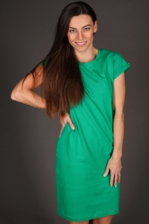 Modelka měří 169 cm. Na fotce má šaty velikost S.