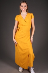 Dlouhé zavinovací šaty s páskem.