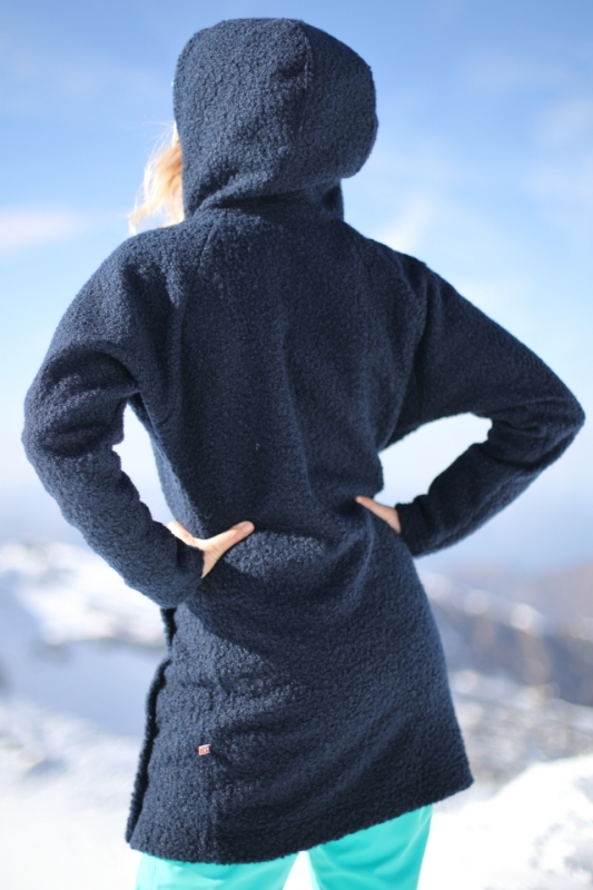 Hřejivé mikinošaty s kapucí a barevnými knoflíky.