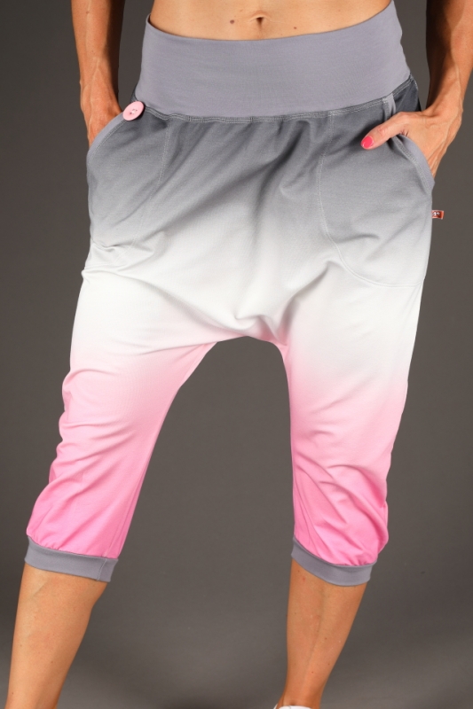 Prodloužený turecký sed, ale zúžený střih přes boky.