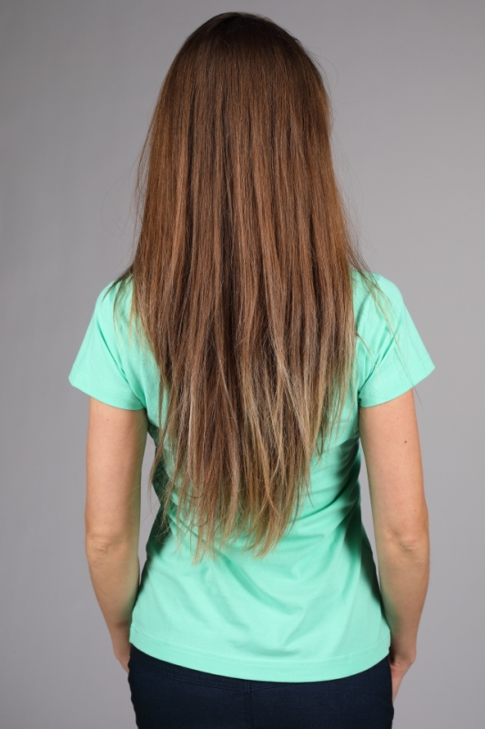 Slečna modelka měří 164cm. Na fotce má tričko vel.S. Běžně nosí vel.36-38.