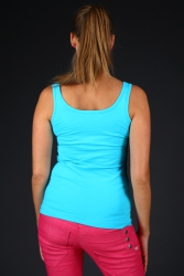 V jednoduchosti je krása...tyrkysové tílko s výstřihem na zádech.