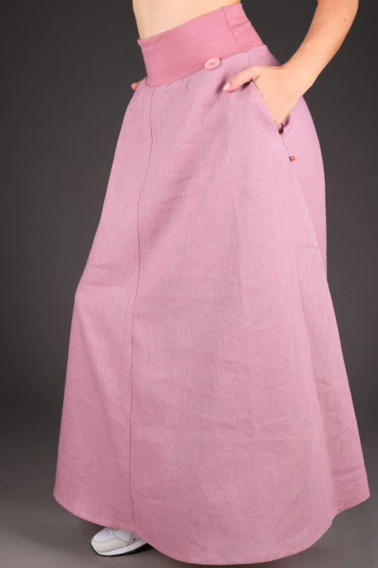 Rozšířená, lněná sukně s pružným pasem.