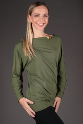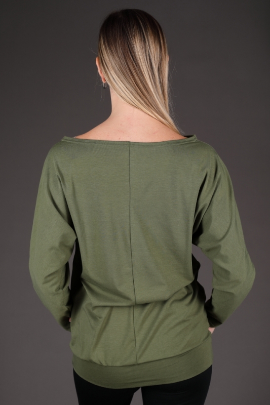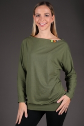 Volný, prodloužený střih. Tričko lichotí postavě.