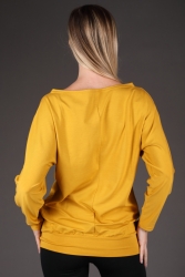 Volný, prodloužený střih. Tričko lichotí postavě.