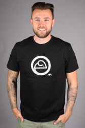 Černé tričko s bílým tiskem.